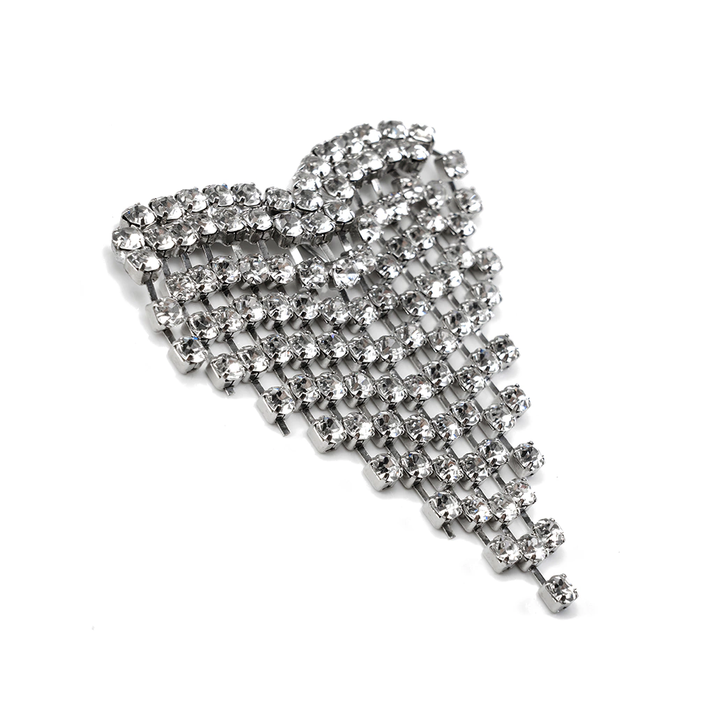 Brinco franjas de cristais em forma de coração, design autoral modelado à mão. Fecho de pino e tarraxa
